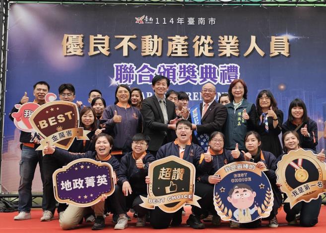 臺南市114年優良不動產從業人員聯合頒獎典禮表揚12位優良從業人員及1家租賃服務業